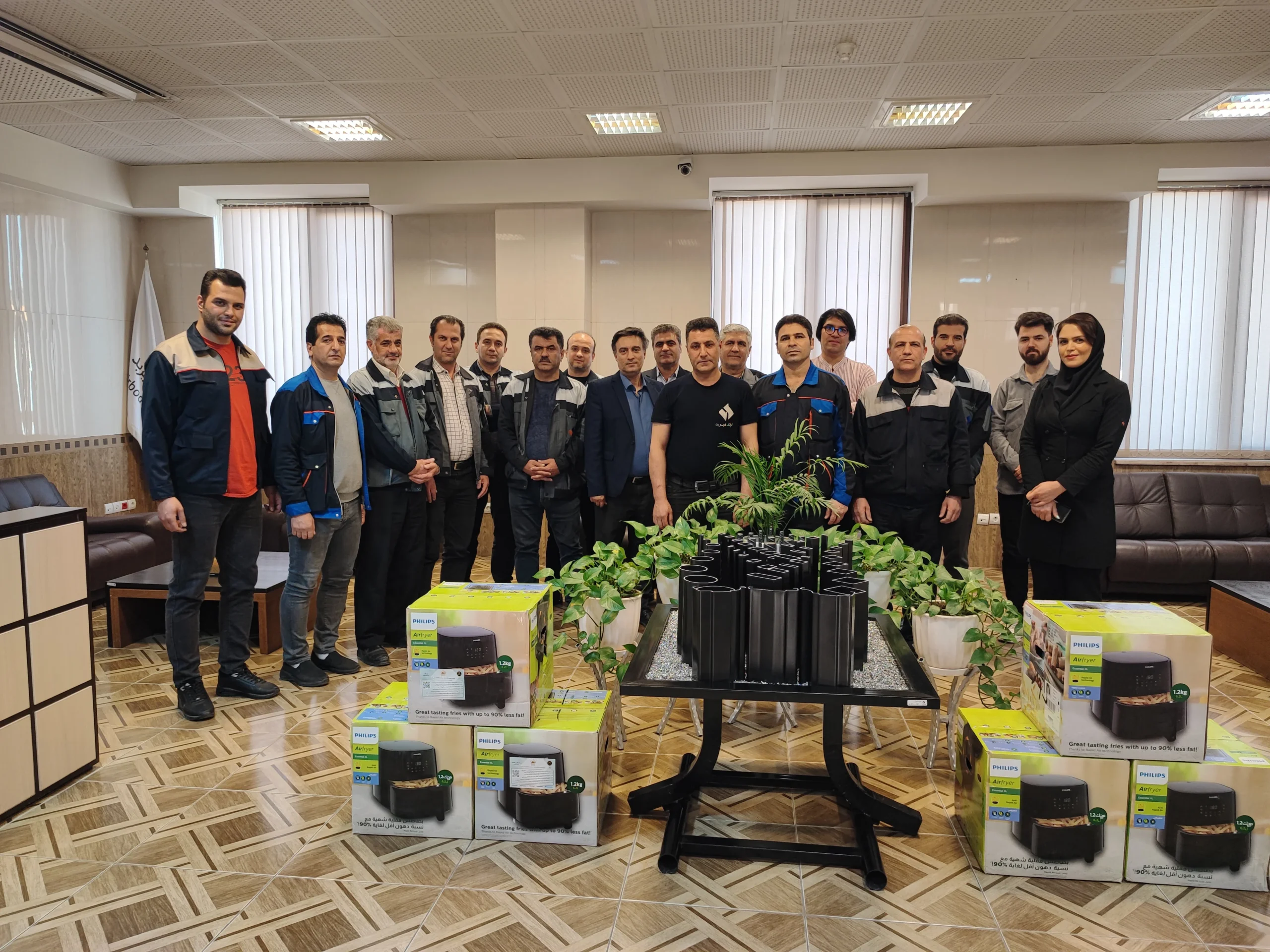 در این مراسم که عطر همدلی و قدرشناسی در آن موج میزد، مدیران و کارکنان گرد هم آمدند تا از کارکنان نمونه ماههای اخیر تجلیل کنند. به هر یک از این عزیزان، یک دستگاه سرخکن به رسم یادبود اهدا شد؛ تا طعم خوشِ قدردانی، همیشه در خانههایشان ماندگار شود.